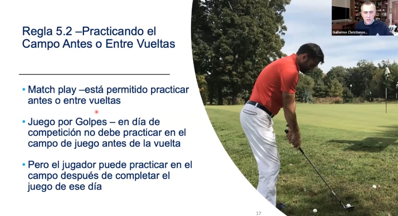 La capacitación fue liderada por Guillermo Christiansen, Presidente del Comité de Reglas FChG y Director de la Escuela de Reglas; junto a los árbitros oficiales Mauricio Galeno P. y Roberto Escaffi se desarrolló entre los días 19, 21, 22 y 24 de agosto con las primeras 3 sesiones remotas, finalizando con una jornada en terreno en el Club de Golf La Dehesa.