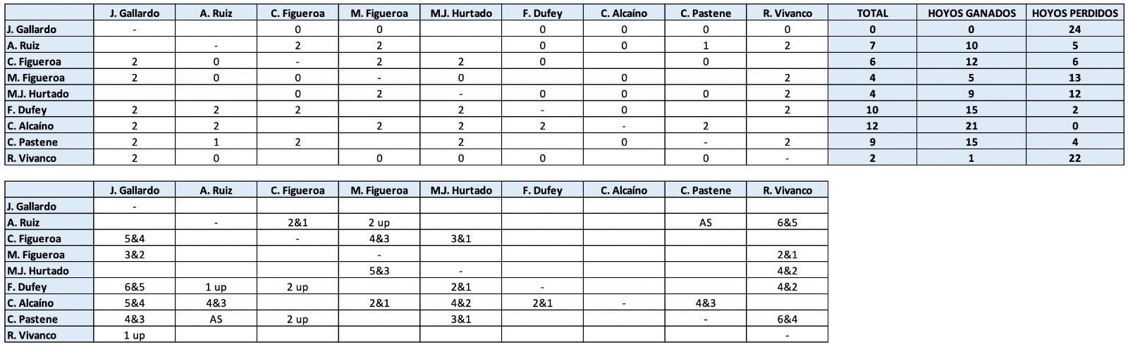 Es que Caro se mantiene a paso perfecto. No solo ganó sus dos partidos del día, sino que se impuso con una autoridad irrefutable, dando cuenta de Javiera Gallardo por 5&4 y venciendo a Catalina Pastene por 4&3, consolidándose en la cima con 12 puntos, puntaje ideal después de tres días de competencia.