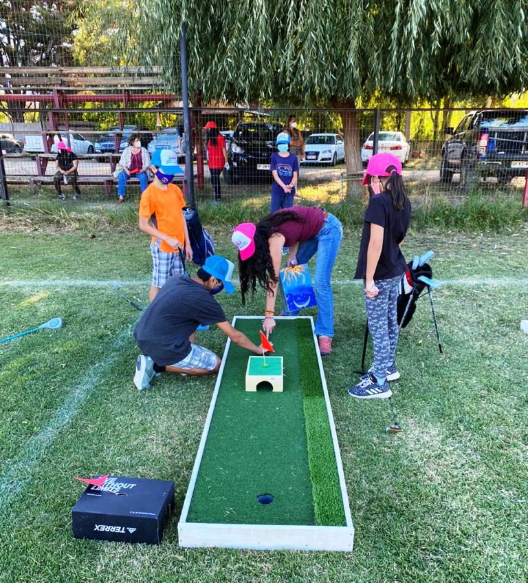 Ya estando a mediados de abril, respetando las restricciones de aforos y con todas las medidas de prevención COVID-19, el proyecto mantiene paso firme con su grupo de entusiastas menores y sus tutores. Habiéndose desarrollado ya 4 clases el grupo pudo avanzar tanto en su desarrollo de habilidades específicas del golf como también diferentes formatos de competencia y juego.